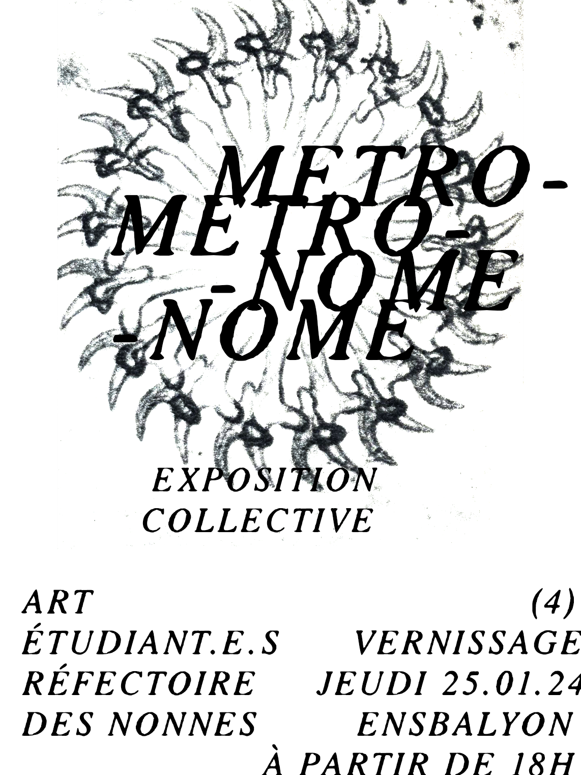 Dans le cadre de leurs bilans et pour donner à voir lors de JPO 2024, les élèves de 4éme années option Art, vous propose l'exposition Métronome.