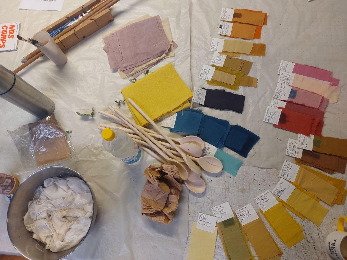 En articulation avec le pôle édition et Sarah Breassier, l'option design textile a invité l'artiste Leslie Chaourse pour une exploration sensible de la teinture végétale.