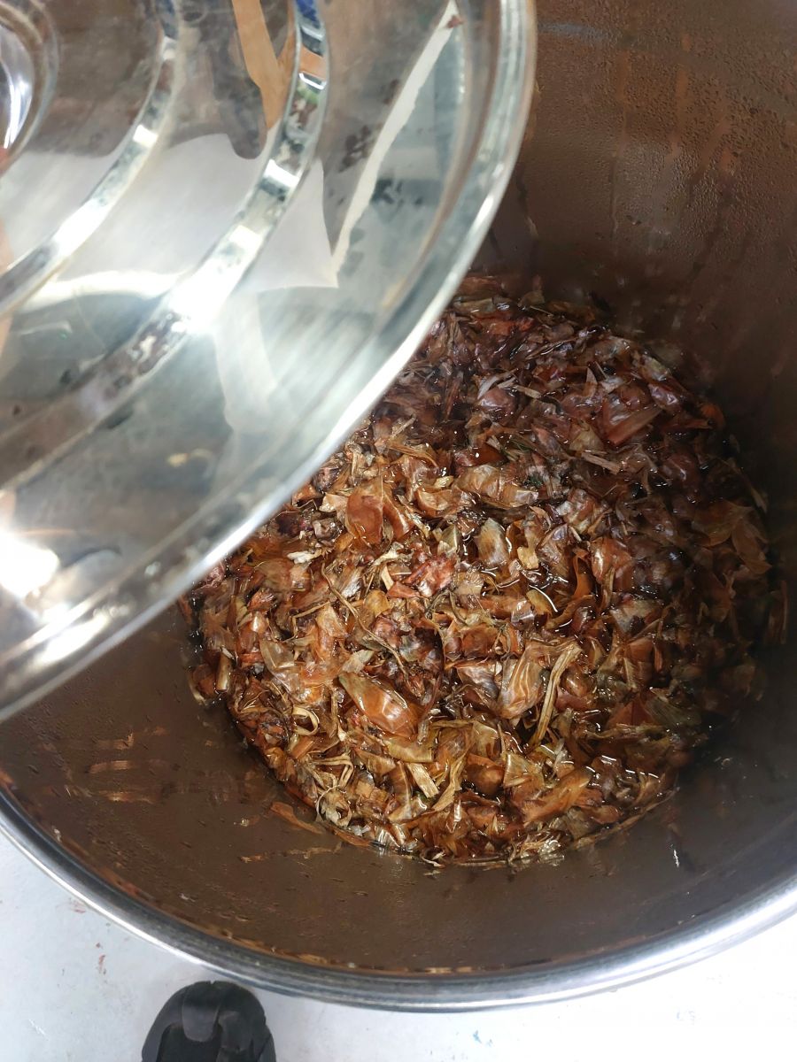 Entre rigueur du protocole et expérimentations empiriques, nous avons préparé différents bouillons pour découvrir les couleurs du vivant issu de la culture et de la cueillette : Glands - Ronces - Oignons - Garance - Camomille - Bois de campêche.