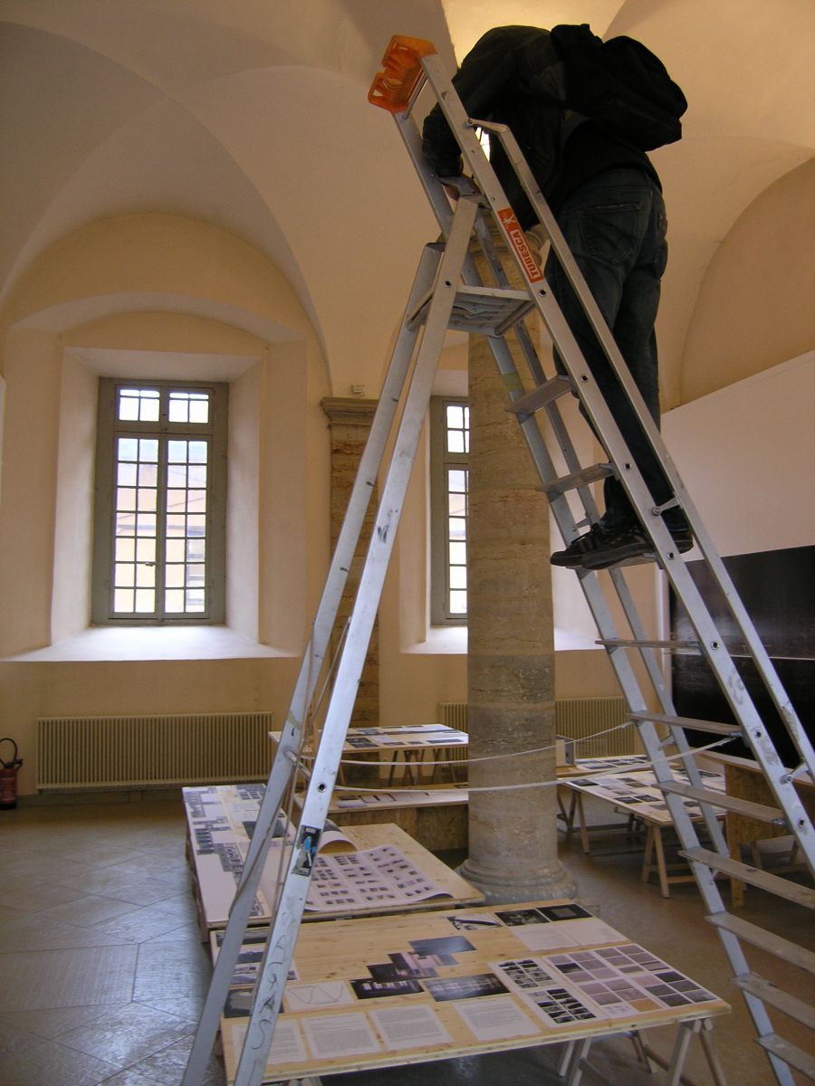 La réflexion s’est poursuivie au long de moments plus intenses et diversifiés à l’occasion de différents colloques qui reprennent et ré-orientent les problématiques. Après une série de réélaborations collectives qui ont cherché à mettre en pratique les questions d’articulations et d’orientations que permet la technique de l’atlas, réélaborations qui se sont traduites par deux moments à même de se servir de l’exposition comme outil de travail, l’ensemble de ces recherches a abouti à la publication collective Le temps suspendu. La majorité de nos considérations s’y cristallise et y prend forme, nous donnant ainsi en retour le sédiment du travail effectué et l’outil de nos réflexions rassemblées et ordonnées de façon à tenter de les rendre parlantes.